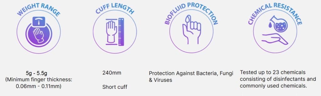 - Beaded cuff for easy donning and prevents rollback.