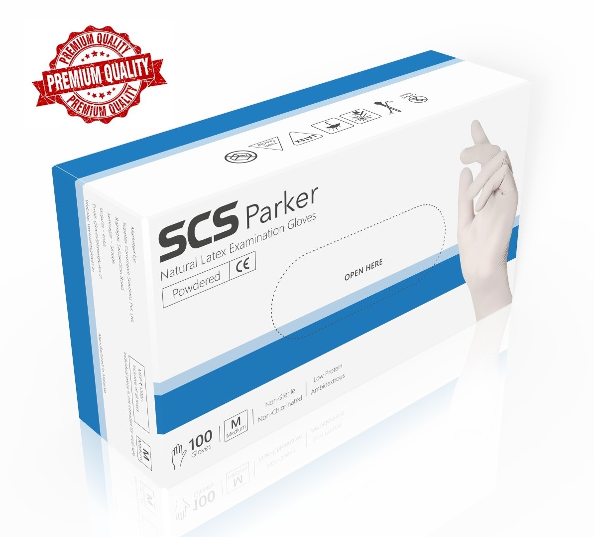 SCS Parker Latex Examination Gloves are lightly dusted with Adsorbable Corn-Starch Powder with High Tear Resistance. These are manufactured from natural rubber latex. The gloves have straight fingers and are ambidextrous for a comfortable fit. These gloves are specially designed for conducting examinations, diagnosis and are safe for handling contaminated instruments. Uncompromised quality control ensures that each glove provides maximum protection against infections while providing superior comfort. High-quality antioxidants are added to increase shelf life.